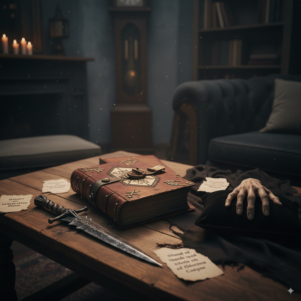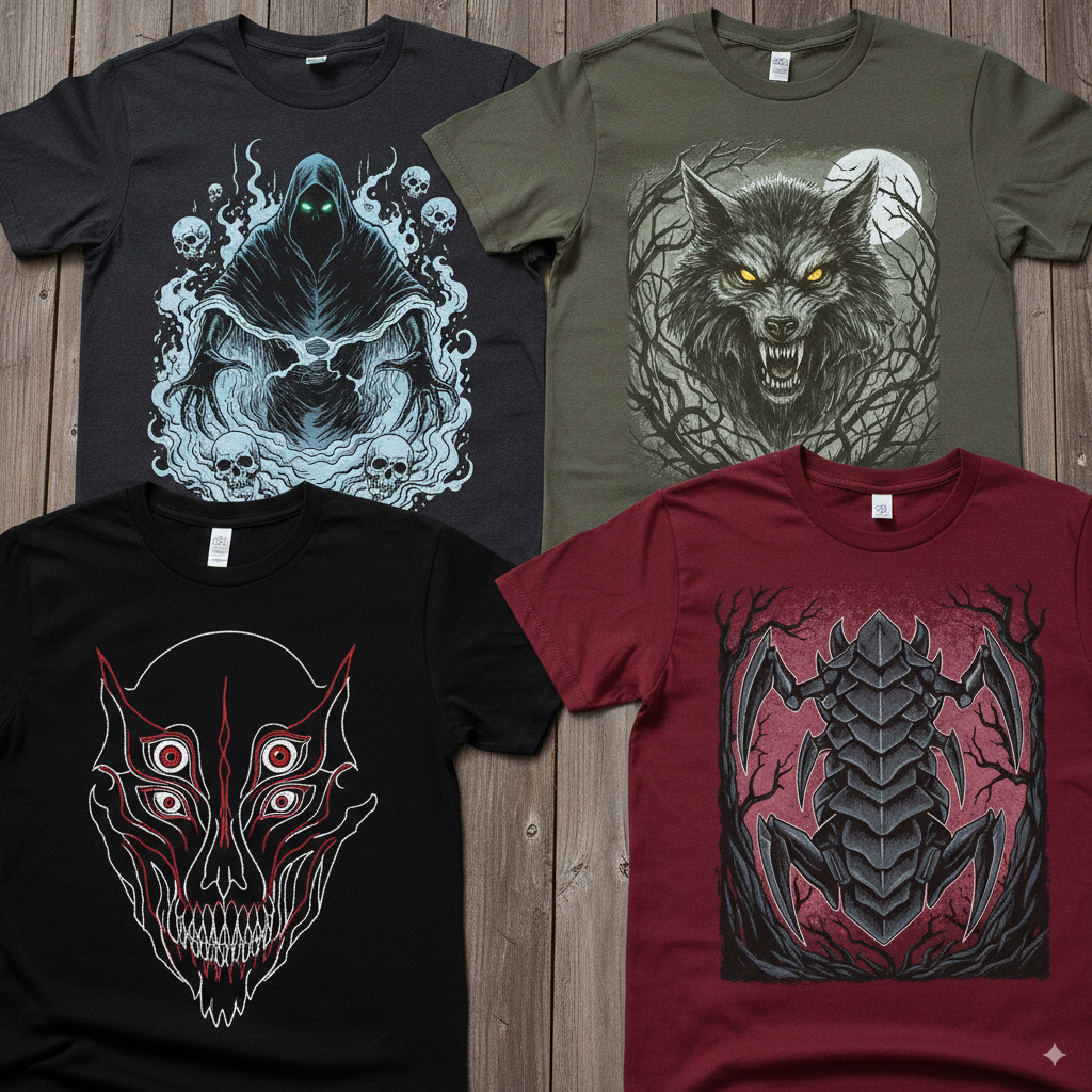 Mystical and occult-themed items featuring witches, demons, and otherworldly entities.